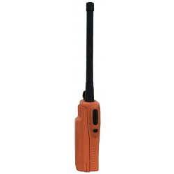 Walkie marino VHF, GMDSS, SOLAS, cumple requerimientos "Wheel mark", certificación IP67 resistente al agua, batería recargable de 7.2V, 2200 mAh, cargador de sobremesa. Incluye además batería de litio de emergencia.