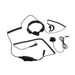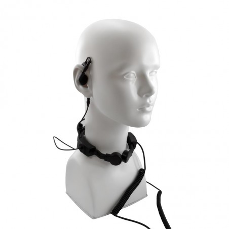 Laringófono profesional con auricular tipo gancho, doble cápsula de micro + doble PTT (pulsador PTT tipo "dedo" con velcro)